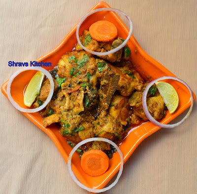 1. Add chicken to pan, add curd, ginger garlic paste, onion paste, salt, turmeric, red chilly powder, coriander powder,