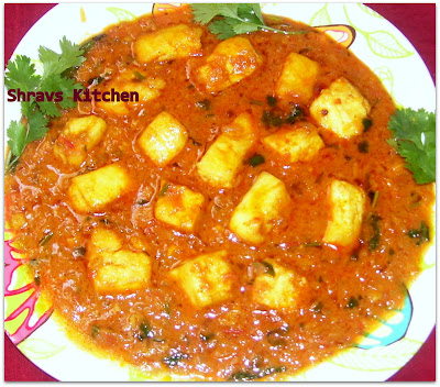 8. Delicious paneer butter masala is ready, serve this dish with rice or roti.