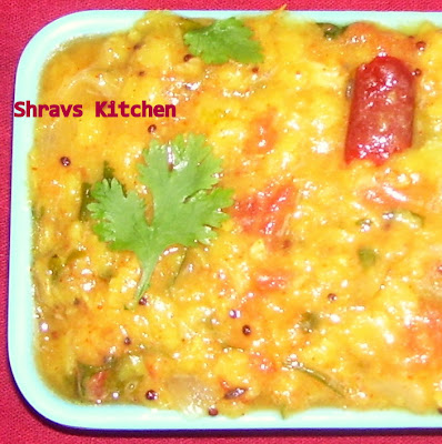 1. Take a pressure cooker, add tur dal, chopped tomato, chopped onion, green chilly, turmeric powder, sufficient water,