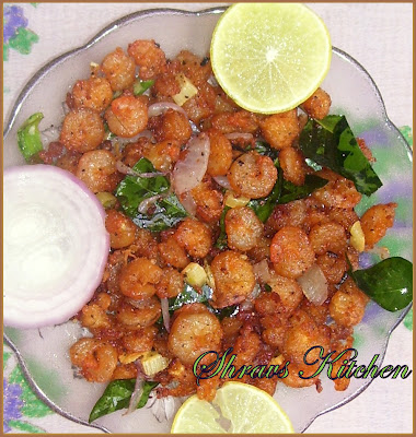 7. Hot & spicy spicy button prawns fry is ready. Add 1 tsp of lemon juice before serving.