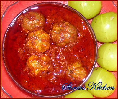 7. Add amla, fry for 7 to 8 minutes in low flame or until they change into light brown in color. Take out and keep them aside.