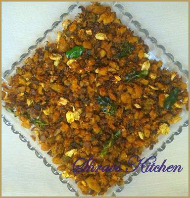 5. Add dry coconut powder, fry for 3 minutes and switch off the flame.